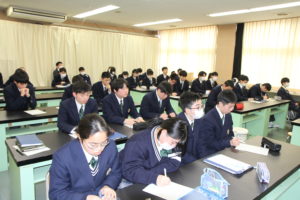 2月18日(水)のパスカルタイムでは合格体験発表会を行いました。国公立大学、専門学校、県内就職、公務員へ進学先を決めた代表8人の3年生が、1・2年生に向けて進路先の志望動機や試験対策の進め方について自分自身の体験談をもとに説明しました。1・2年生からは「今のうちに取り組んでおくべきことは何か」、「部活動とどのように両立すべきか」など、多くの質問が寄せられました。1・2年生の皆さんは今回学んだことを活かし、進路実現に向けて自分のできることから積極的に取り組んでいきましょう!